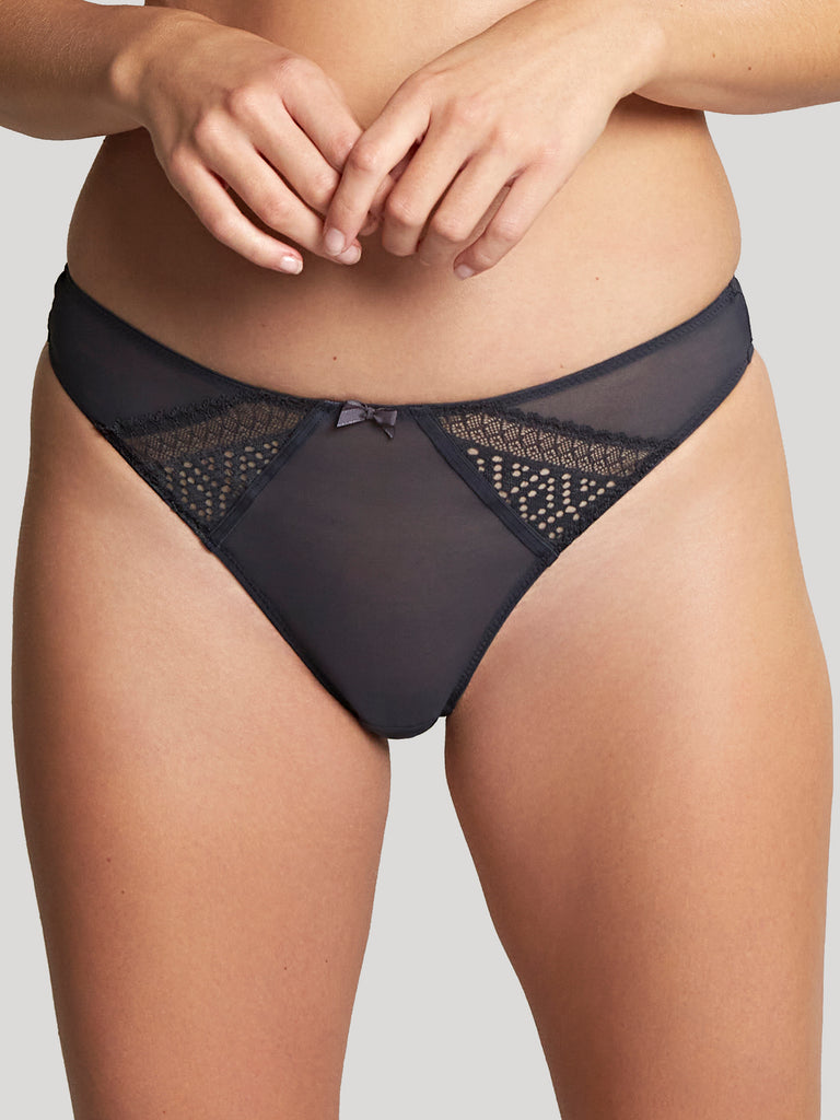 The Cleo Atlanta Brazilian Brief in Graphite is super flattering, with turned back legs to give a smooth finish. Decorated with modern geometric lace. Match them with your Cleo Atlanta Plunge Bra for the perfect look!