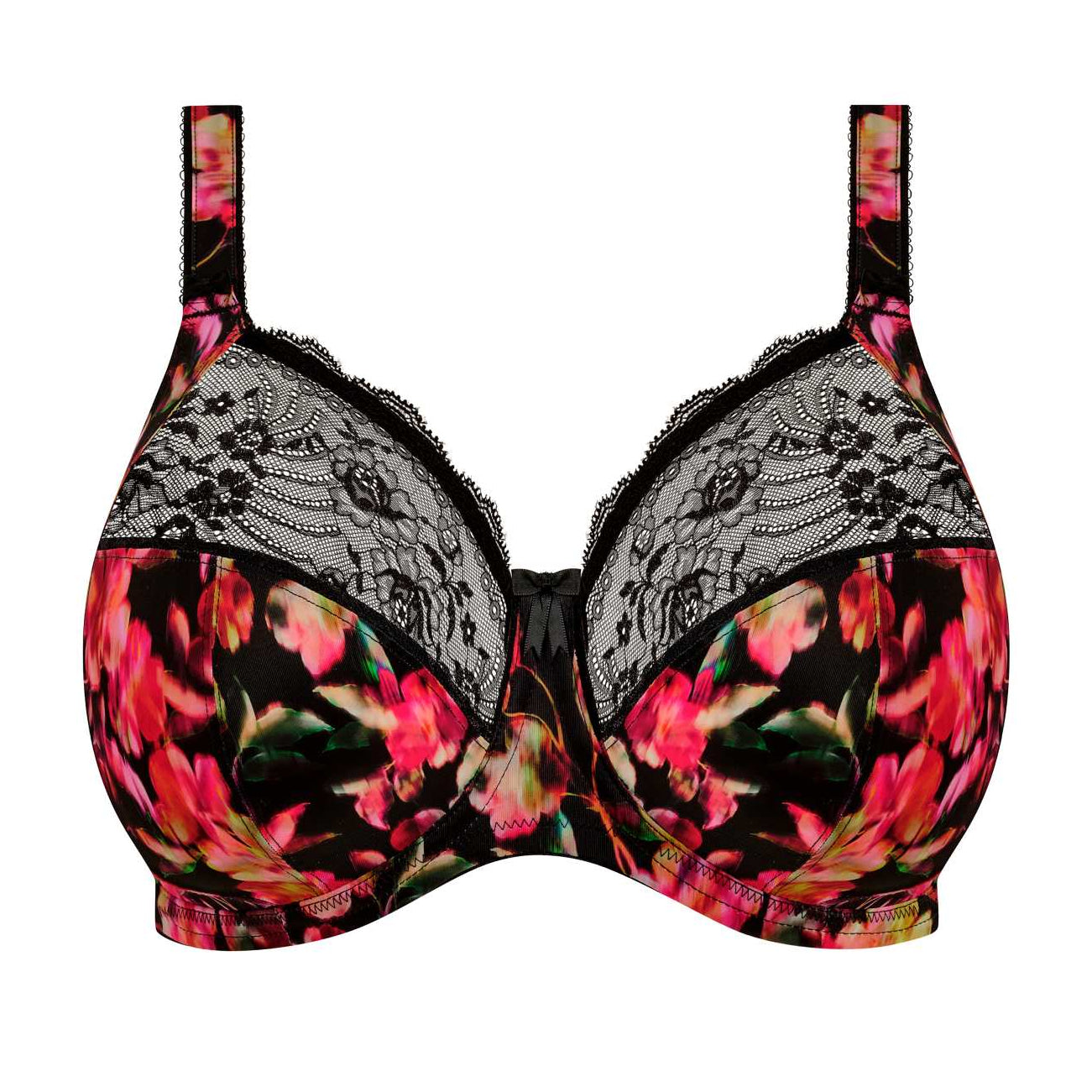 The best selling Elomi Morgan Stretch Banded Bra is all about everyday comfort and style. The banded bra in a bold and playful floral print, Hot House, showcases its silky fabric and beautiful stretch lace. Three section cups plus side frame offers ultimate support and shape.