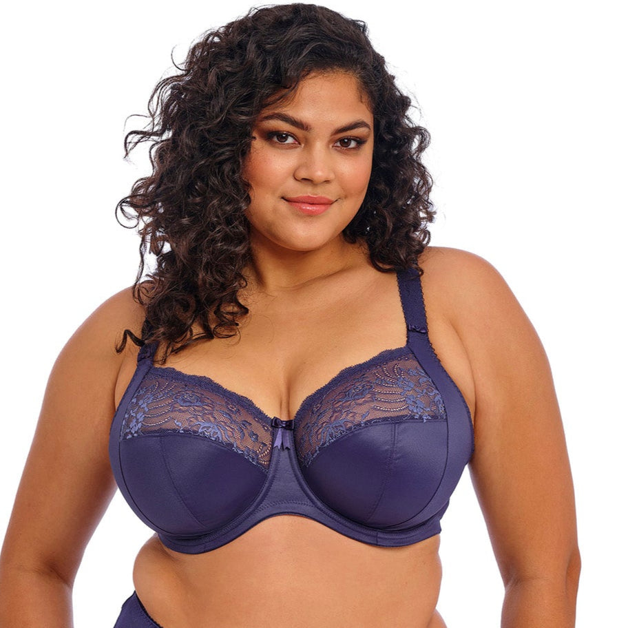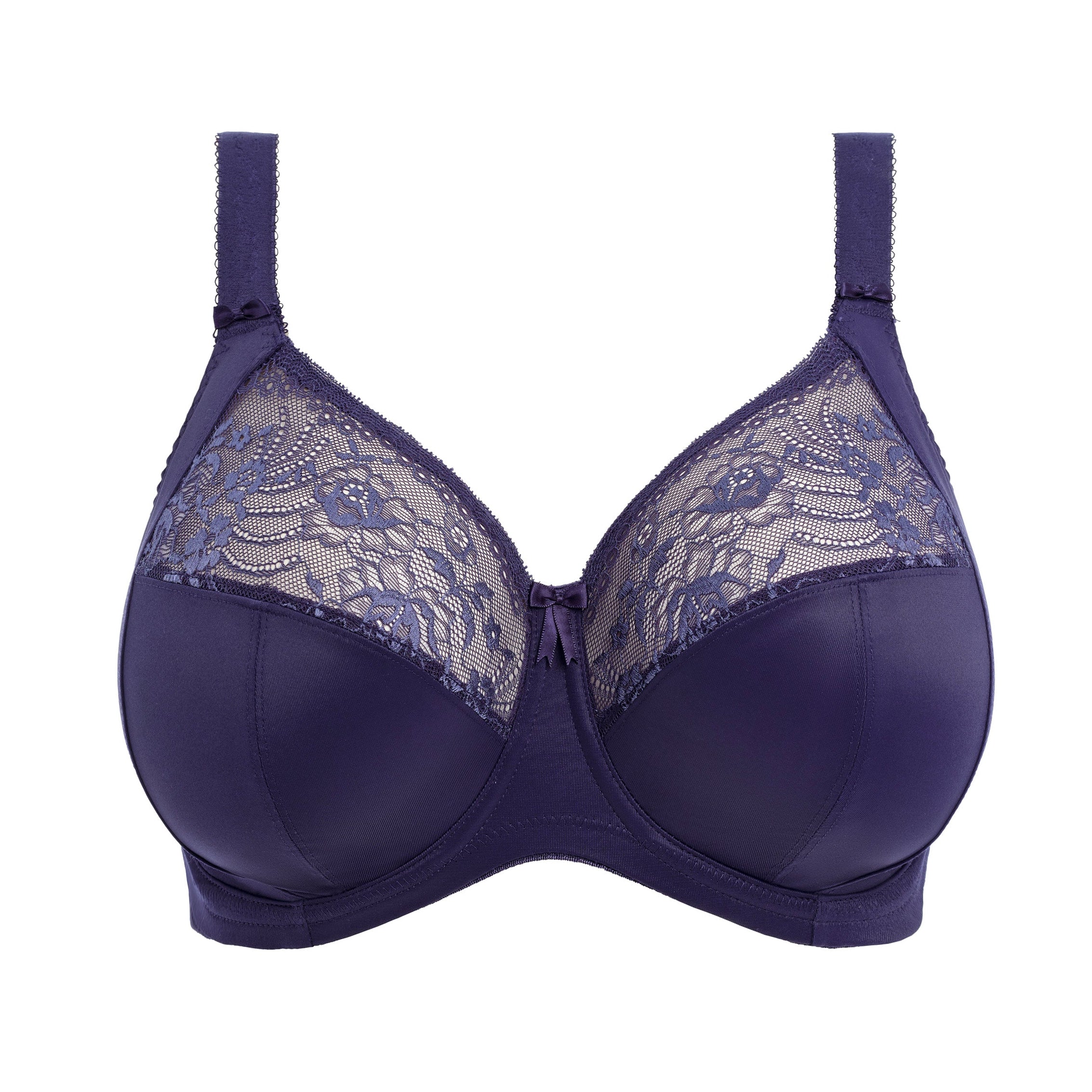 The best selling Elomi Morgan Stretch Banded Bra is all about everyday comfort and style. The banded bra in midnight blue, showcases its silky fabric and beautiful stretch lace. Three section cups plus side frame offers ultimate support and shape.