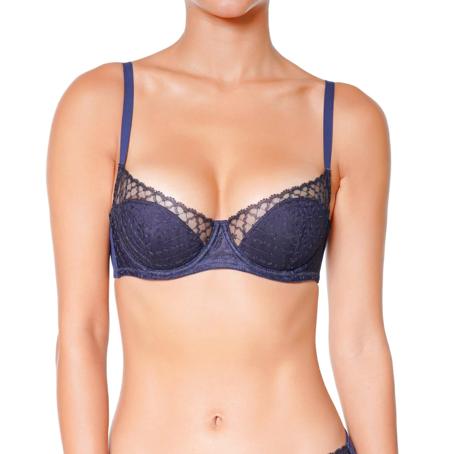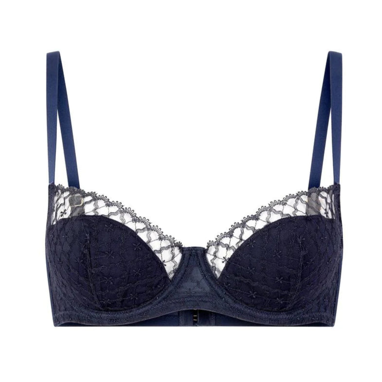 Available in a timeless midnight blue (bleu nuit), this bra combines sophistication and refinement, offering a sleek, elegant look for any occasion. Huit Eclipse is the Ultimate Push-Up Balcony Bra for a Stunning Cleavage.