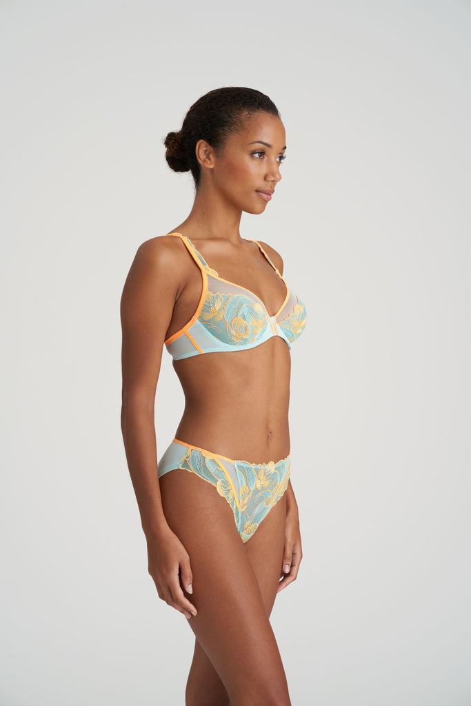Marie Jo Georgia Plunge Bra is an airy, summery underwire bra with a plunging neckline, the epitome of femininity! The slightly abstract floral print in neon hues on the cups steals the show. Delicate straps add an extra-feminine touch. Clearwater: unadulterated flower power in bright hues.