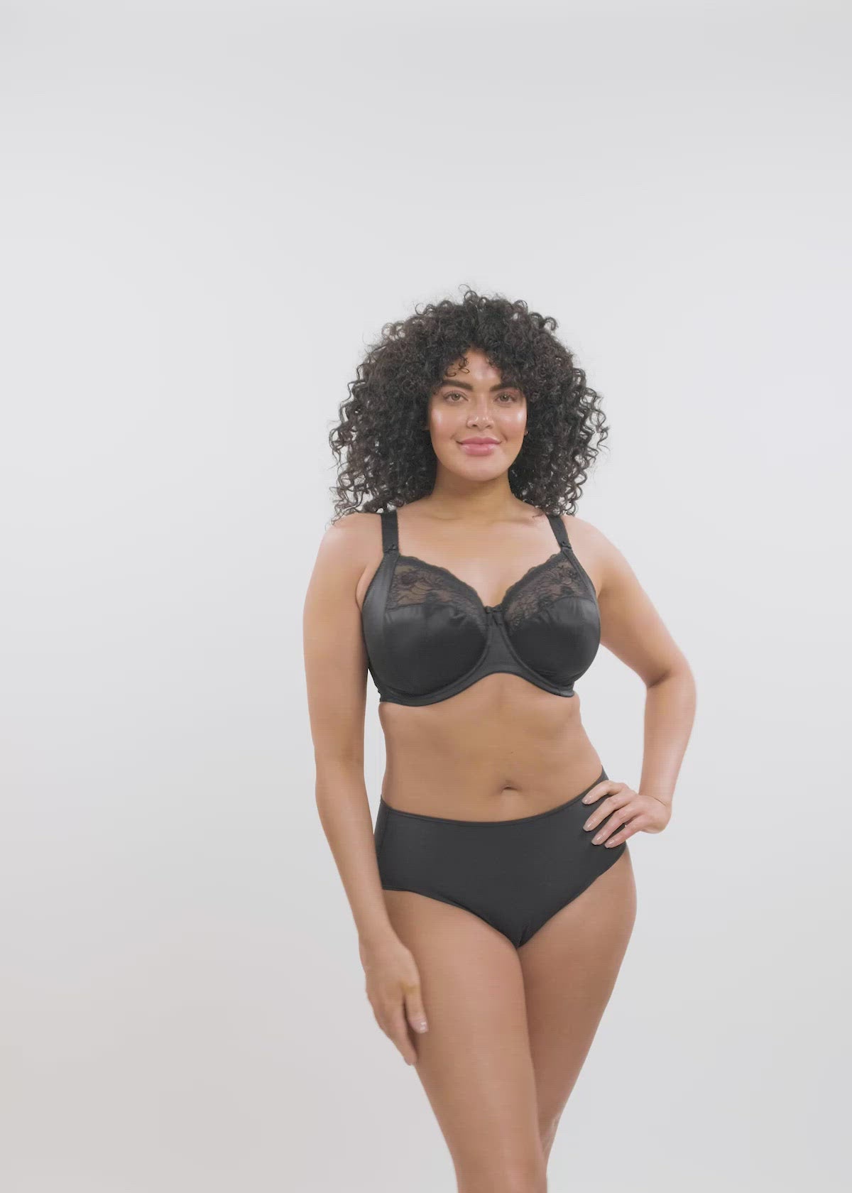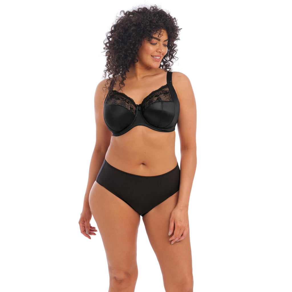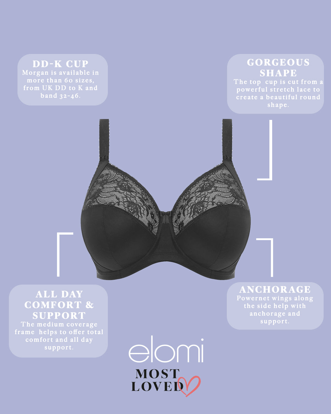 The best selling Elomi Morgan Stretch Banded Bra is all about everyday comfort and style. The banded bra in classic Black, showcases its silky fabric and beautiful stretch lace. Three section cups plus side frame offers ultimate support and shape.