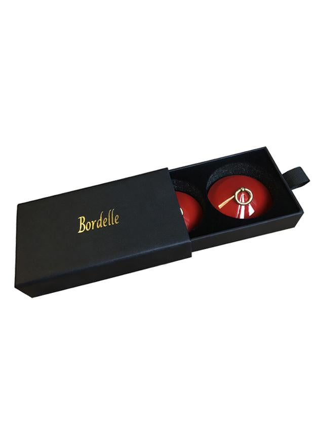 Bordelle's 'O' Enamel Nipplets in burnt red feature 24k gold plated ‘O’ rings and are a playful nod to Bordelle’s signature bondage aesthetic. Packaged in a beautiful display box and perfect for gifting.