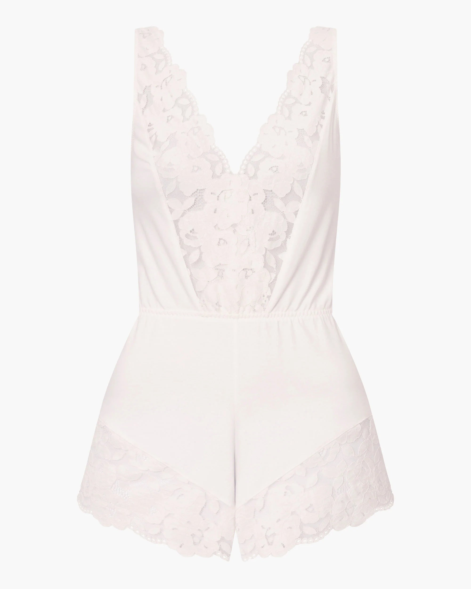 Inspired by the charm of a leisurely al fresco lunch, Cosabella Romanza Sleep Romper features innovative soft cotton lace reminiscent of Venetian techniques, blending seamlessly with cozy cotton jersey for a look that's as beautiful as it is comfortable. Custom-designed for Cosabella, the lace motifs draw from handmade heirloom lace, ensuring each piece exudes timeless elegance with a modern twist.