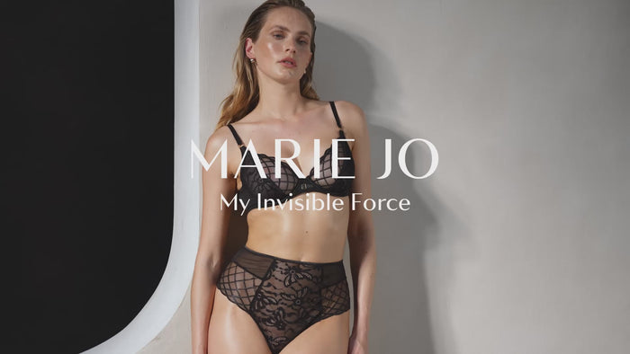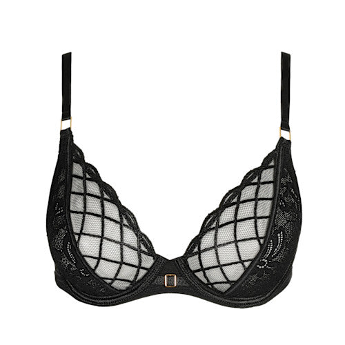 Marie Jo Aven Plunge Bra in classic black is a plunge bra with a sexy V-neckline crafted with a blend of floral lace and graphic embroidery from France. Pure, powerful, always on trend.