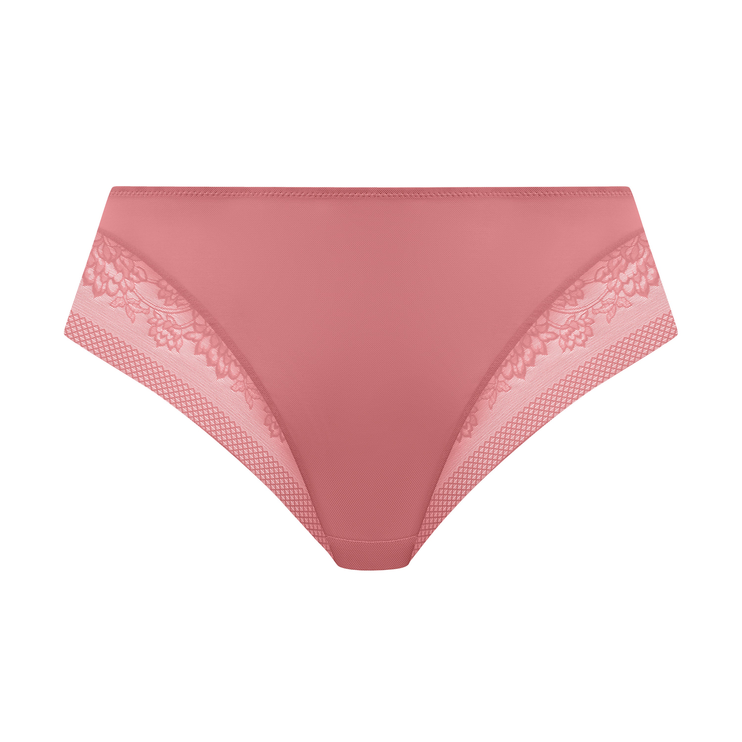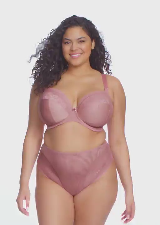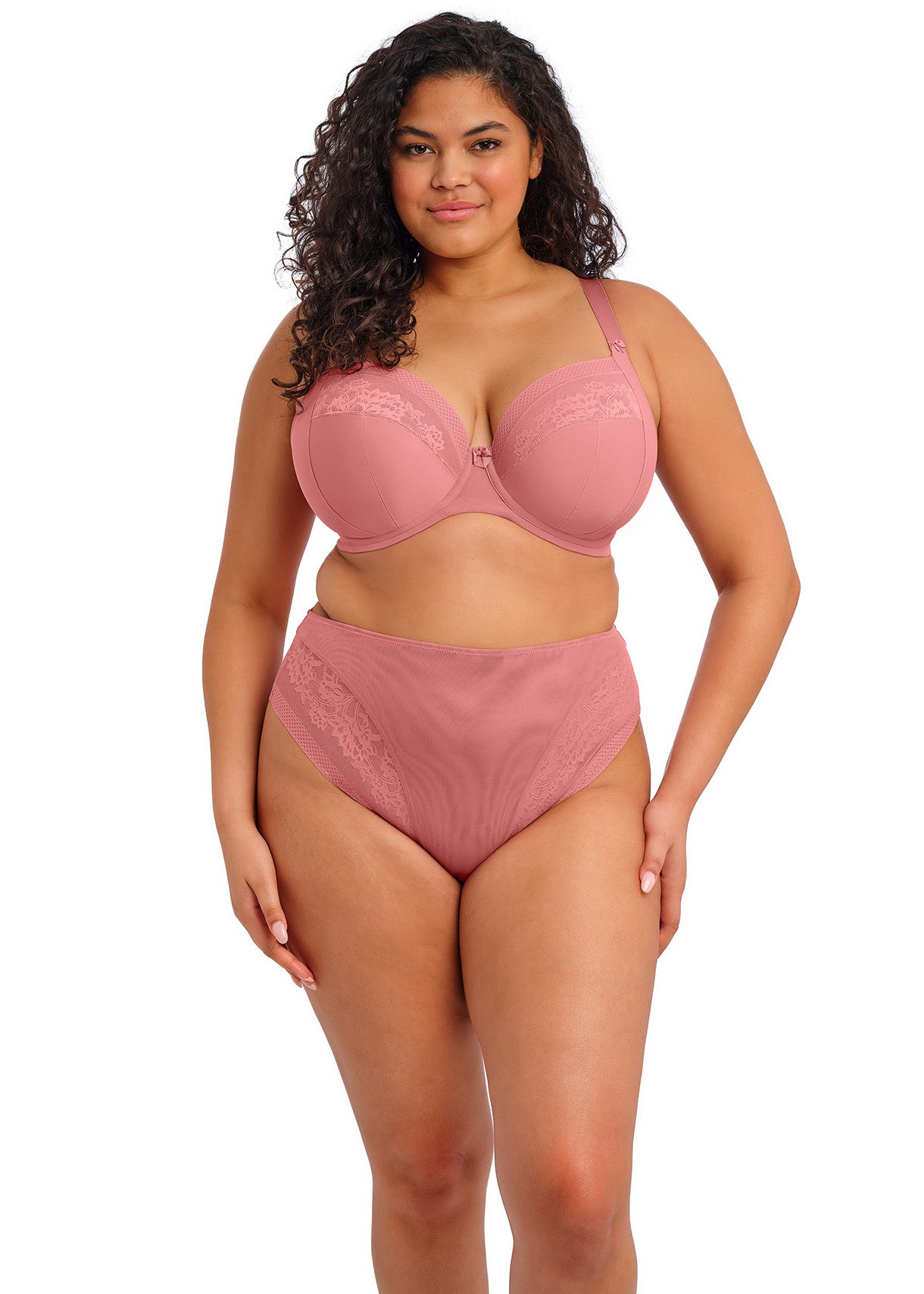 Elomi Nerina High Leg Brief in dusty rose is a calming shade of pink. The perfect match for your Nerina set. With a silky fabric and seamless back, this high leg brief offers hold and comfort.