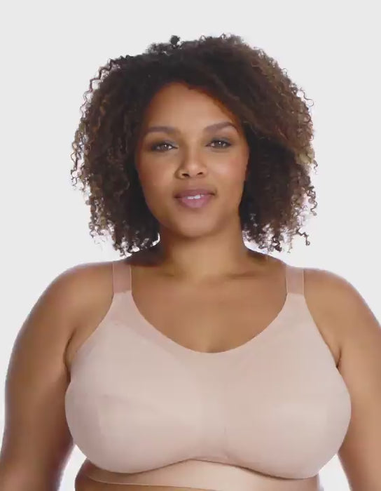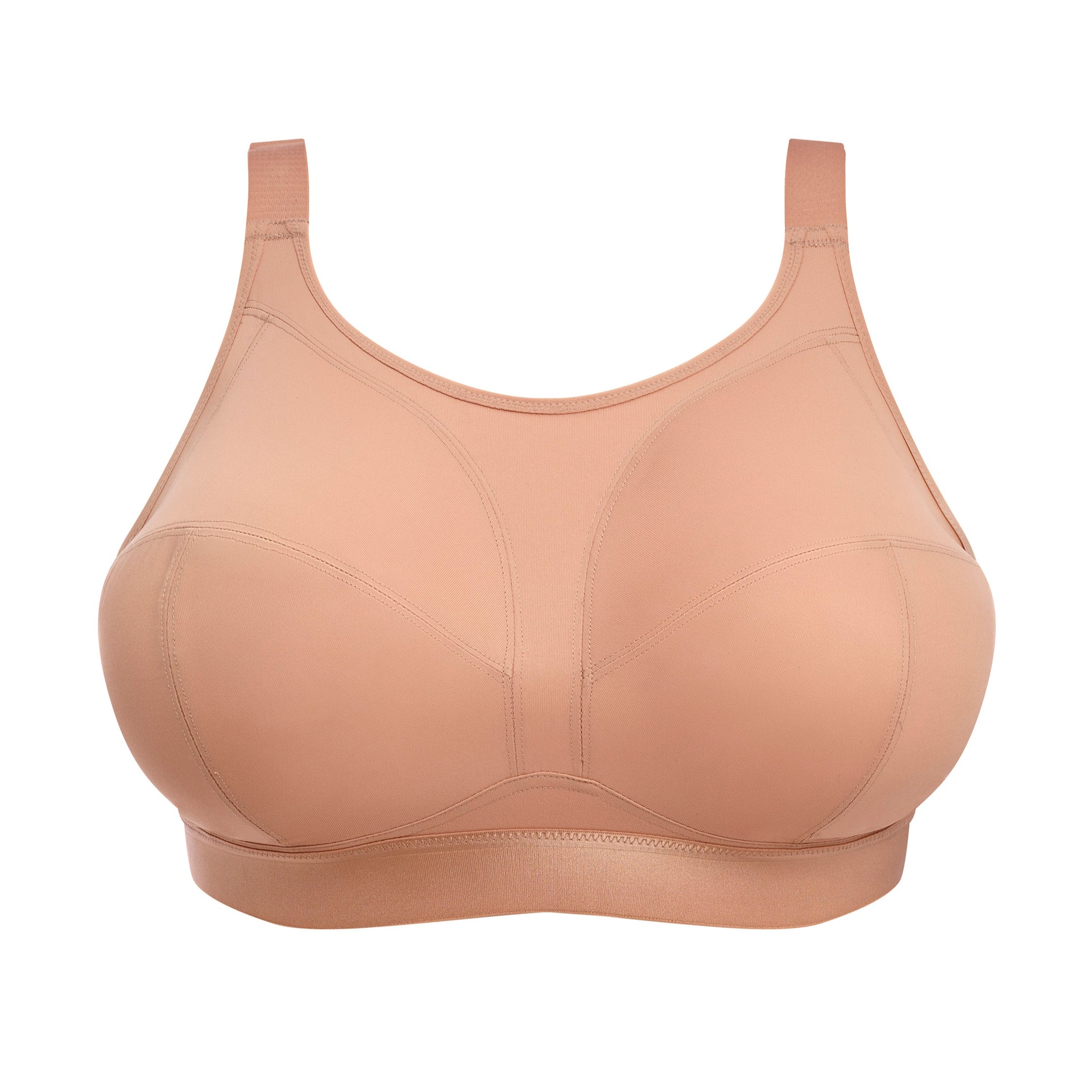 It has a three-section cup, plus a side support panel to retain forward shape. Complete with super-soft fold-over elastics at the neckline and underarm for your comfort and security. Keep cool and dry with our moisture wicking fabric so you never miss a beat.