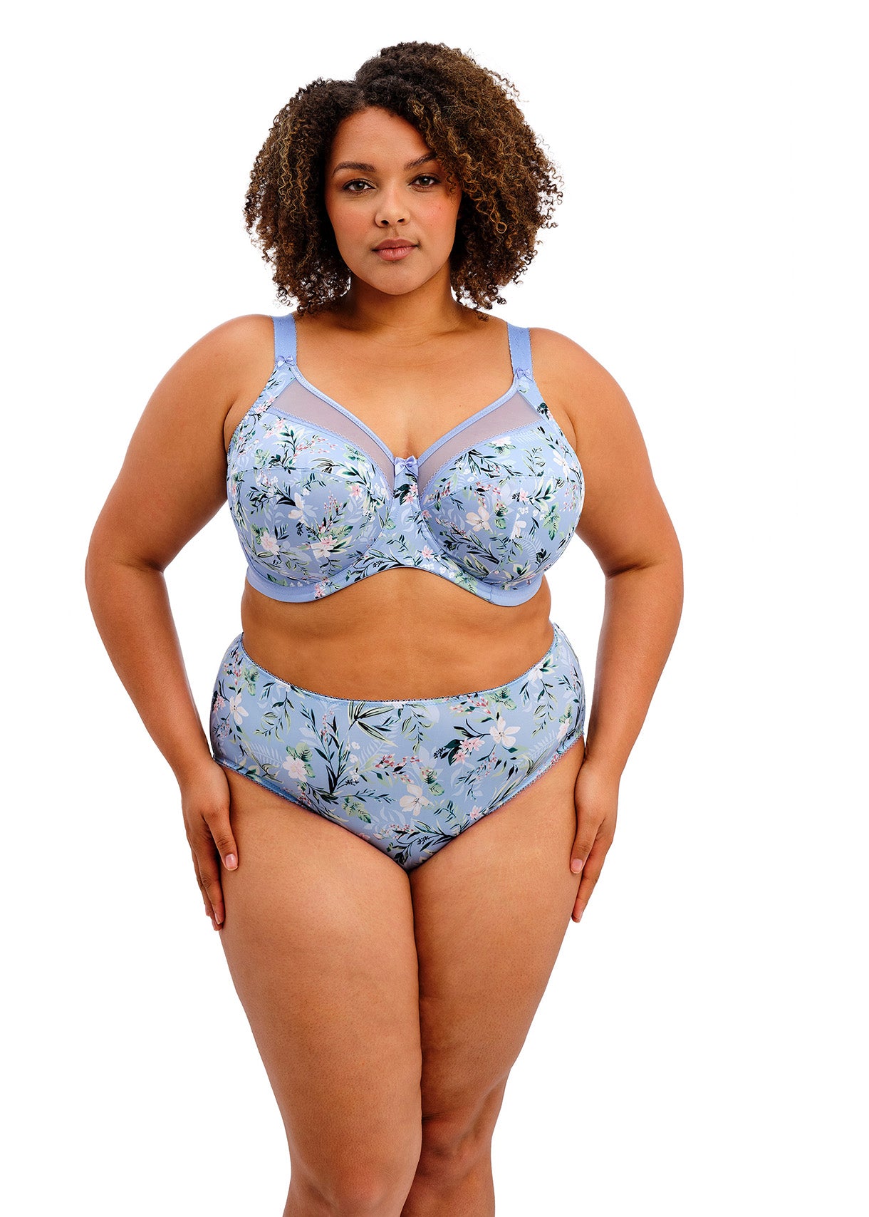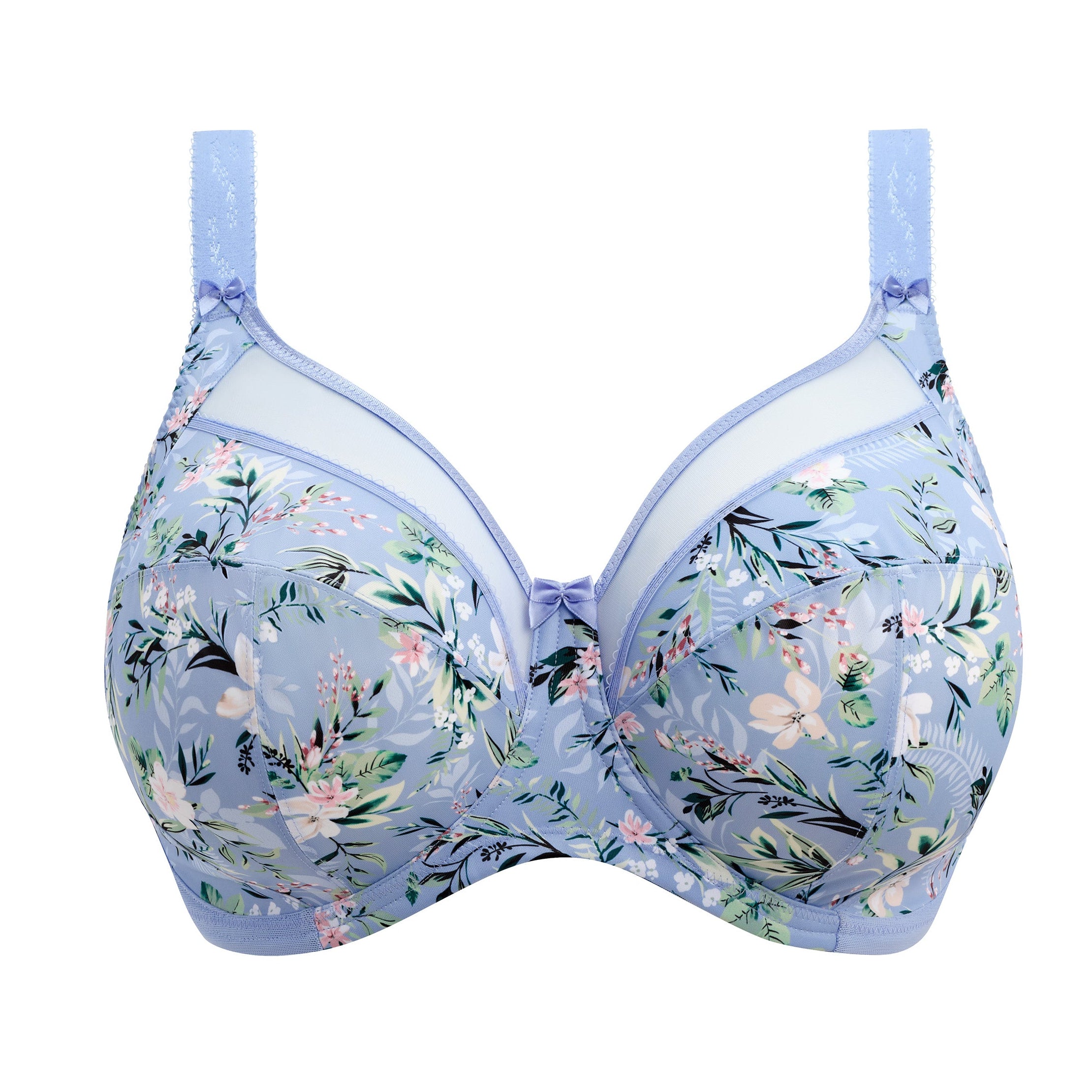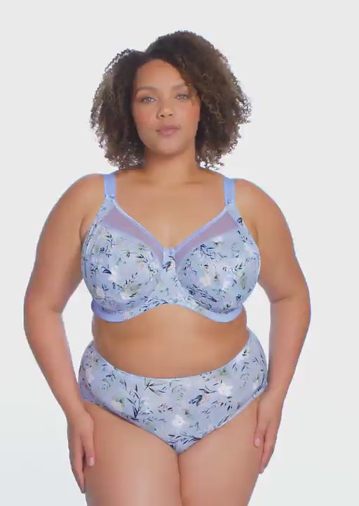 Crafted for comfortable support, Goddess Kayla Banded Bra returns in Cornflower Blue, a refreshing spring design in beautiful shades of greens and ivory across a blue base.