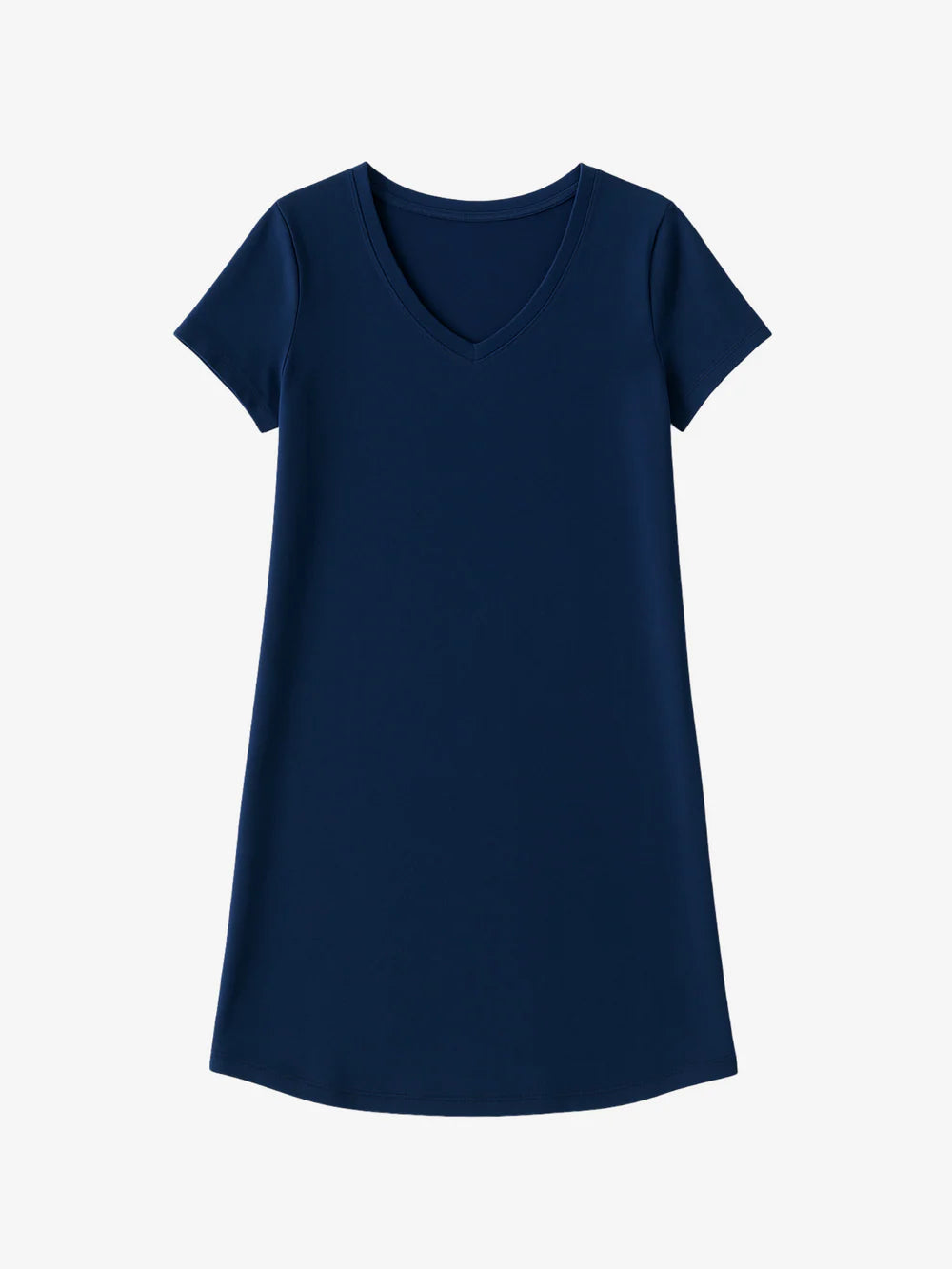 This classic sleepshirt is comfortable, simple, and figure-flattering. The perfect addition to your sleepwear wardrobe for year-round use. Flattering V-neck and slight shaping at the waist. The Eva doubles as daywear and a swim coverup. Infused with the technology that made Lusomé famous!