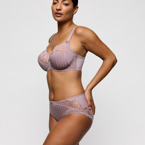 Prima Donna Madison Full Cup Bra is a three-piece full cup bra with checked fabric and flirty lace along the cleavage and straps. Soft Sand is a warm, elegant neutral.