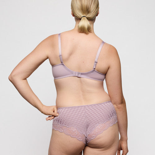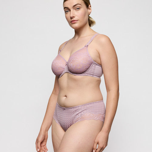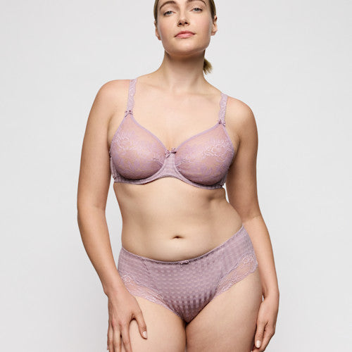 Prima Donna Madison Seamless Unlined Bra is romantic, airy, and supportive! This sheer, full-cup bra has seamless, heart-shaped cups made from French lace with a retro floral print. Comfy & trendy! The straps are adorned with lace. Soft Sand is a mellow new colour that suits all skin tones. A hint of shimmer in the fabric adds depth and liveliness.